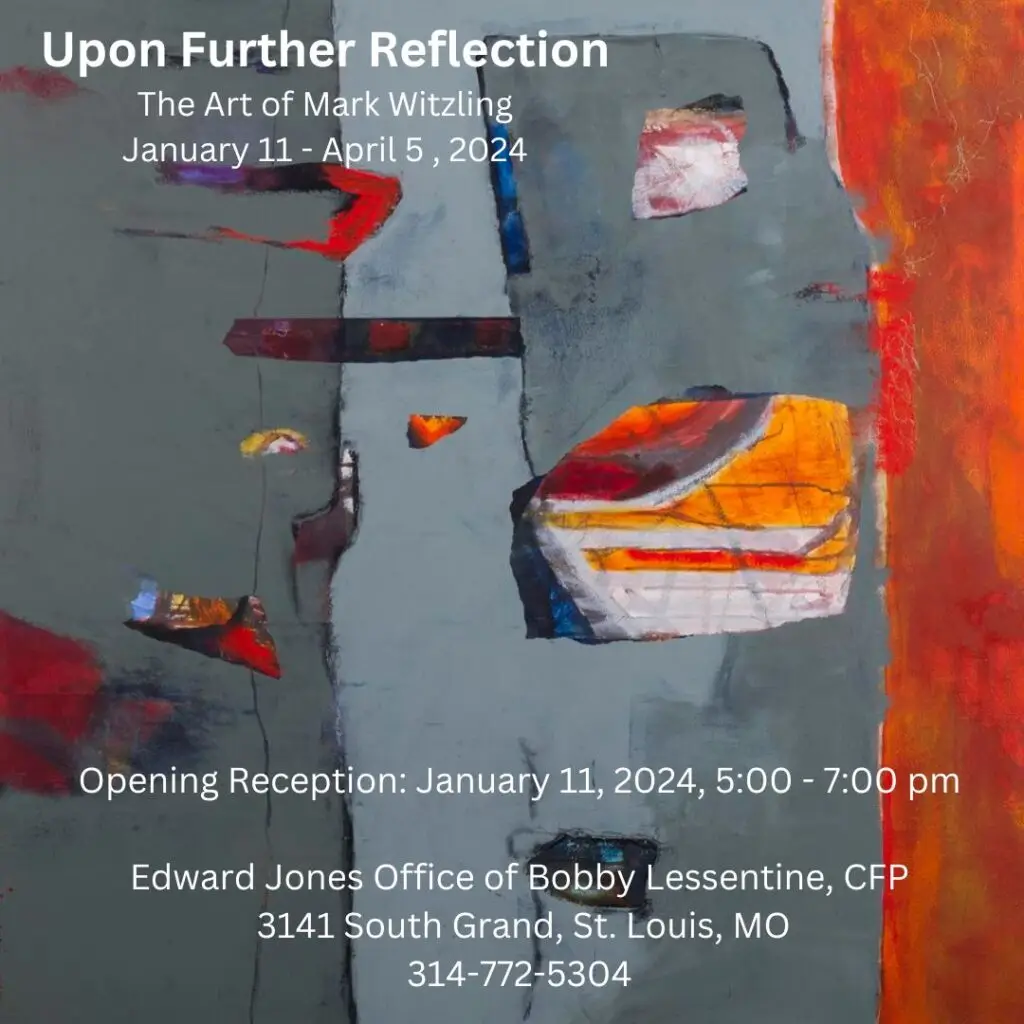 Green Door Art Gallery is pleased to partner with Bobby Lessentine, Financial Advisor, Edward Jones, in presenting Upon Further Reflection, a collection of oil and cold wax paintings by Mark Witzling.